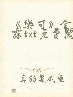 最新章节:《乐可》金银花露txt免费阅读