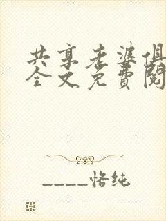 最新章节:共享老婆俱乐部全文免费阅读
