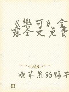 最新章节:《乐可》金银花露全文免费阅读在线