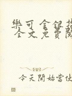 最新章节:乐可 金银花露 全文免费阅读