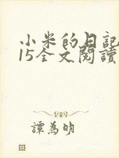 反正就这样看着看着。小米的日记1一15全文阅读整体来说比较稳定。属于那种能慢慢看下去的类型。...