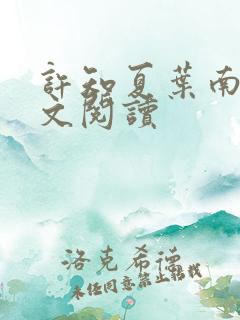 许知夏叶南舟全文阅读