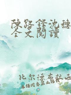 最新章节:陈路锋沈穗小说全文阅读