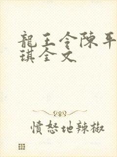 最新章节:龙王令陈平苏雨琪全文