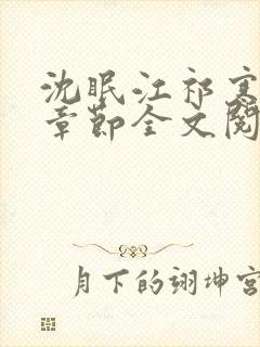 《沈眠江祁寒最新章节全文阅读》章节列表
