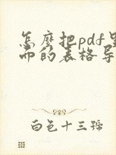 最新章节:怎么把pdf里面的表格导出到excel